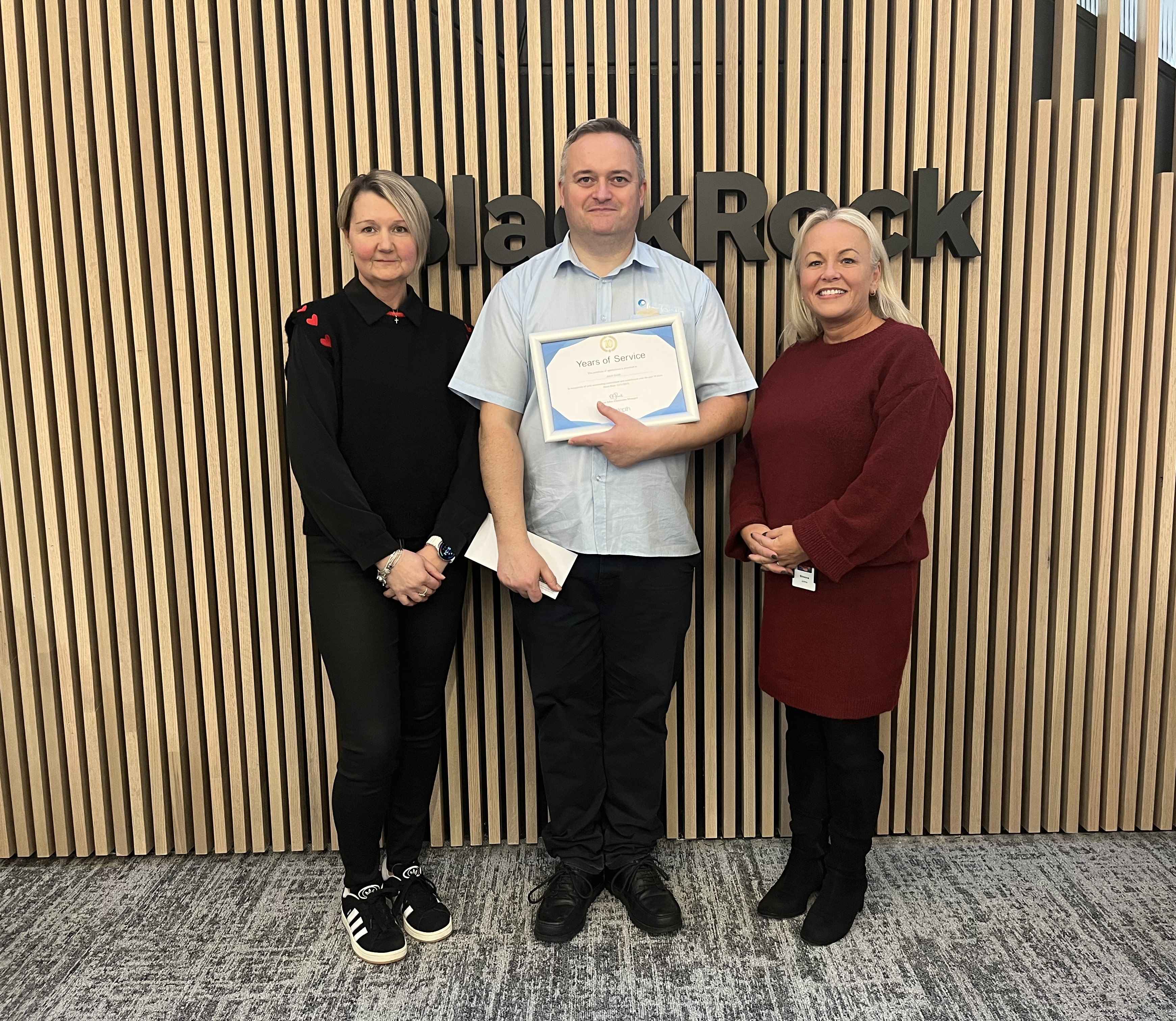 During the visit, we were especially proud to recognise a significant milestone. One of our cleaning operatives, Jakub, was presented with a certificate to celebrate an incredible 10 years of dedicated service at the site. This achievement reflects Jakub’s long-term commitment, professionalism, and the high standards he brings to his role every day.