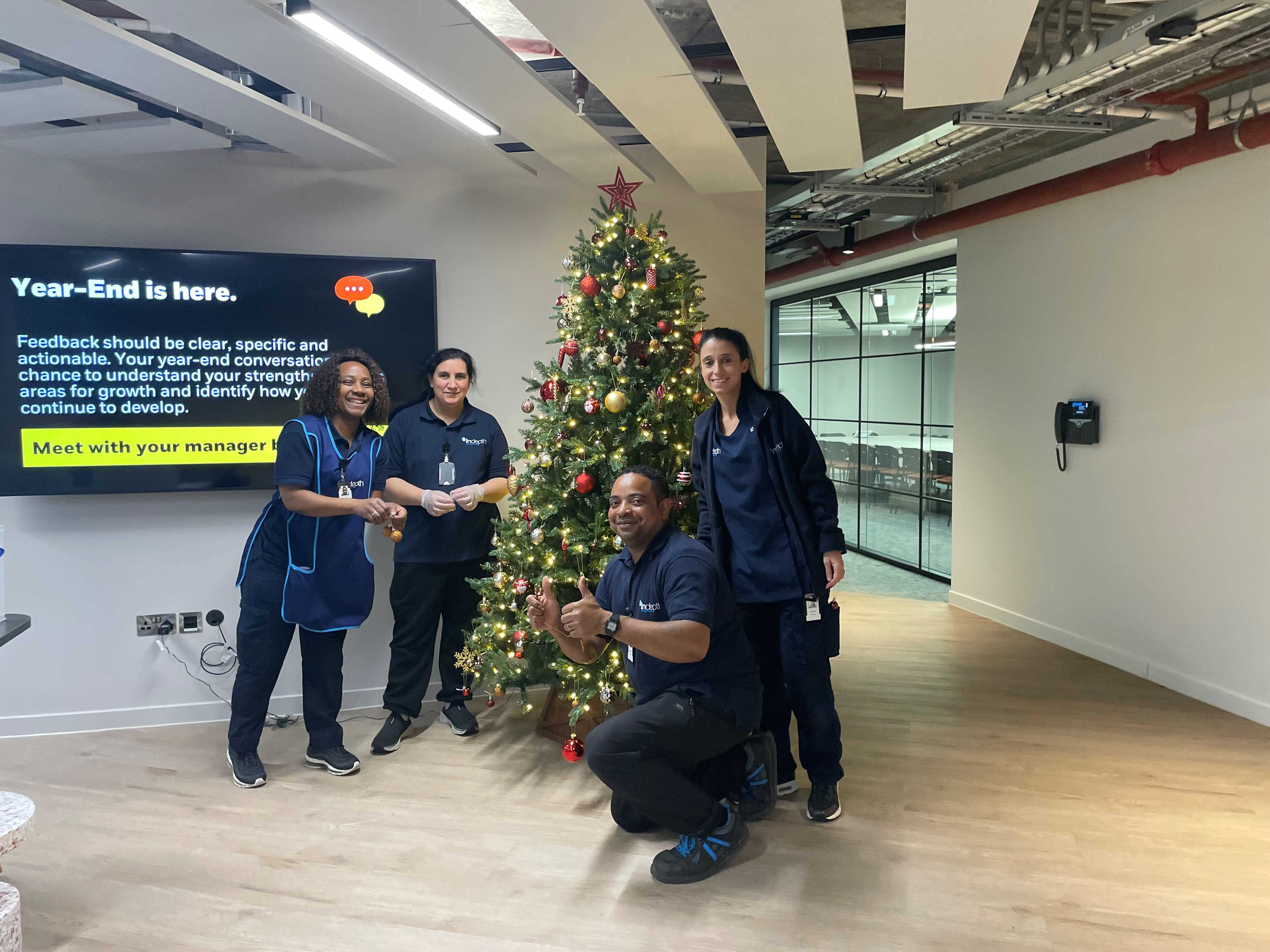 Our National Operations Manager, Simone Johns, recently visited the site to catch up with the team and see the fantastic job they’ve done helping to decorate the Christmas trees, just in time to get everyone into the festive spirit. Their attention to detail and pride in their work were clear to see and play an important role in maintaining a positive environment throughout the building.