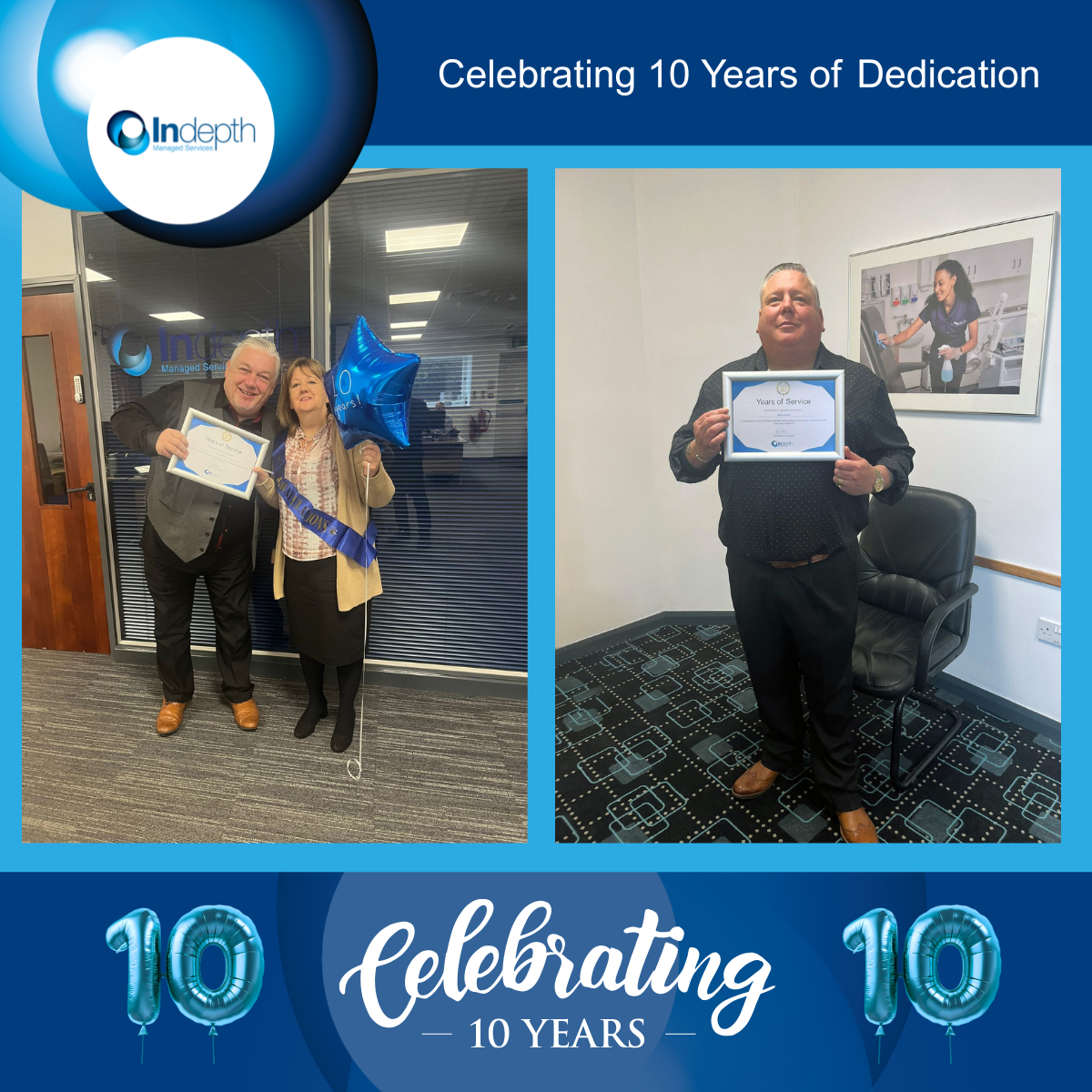 As we approach the end of 2025, we are delighted to celebrate two remarkable recent milestones that embody the loyalty, commitment, and spirit of our organisation. Both Martin Levand and Jackie Houghton mark an incredible 10 years with Indepth, which is an achievement that reflects not only personal dedication but also the strength and culture of our team.