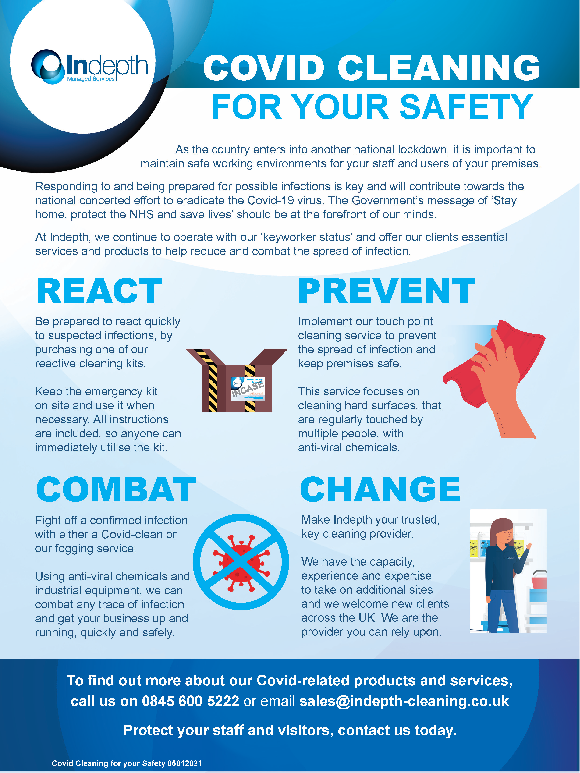 At Indepth, we continue to operate with our 'keyworker status' and offer our clients essential services and products to help reduce and combat the spread of infection.