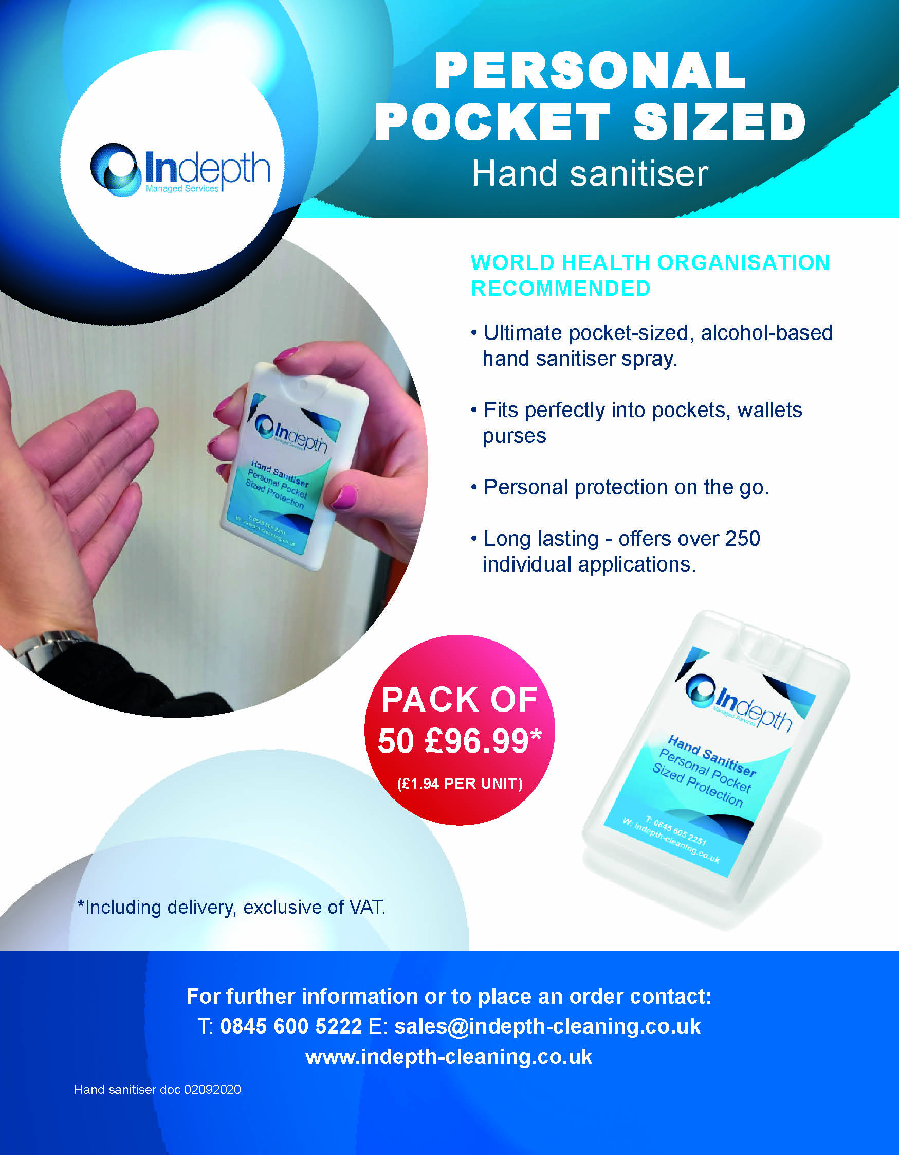 Keep your staff safe with our ultimate pocket-sized hand sanitiser. These alcohol-based sprays fit perfectly into pockets, wallets and purses, providing personal protection on the go.