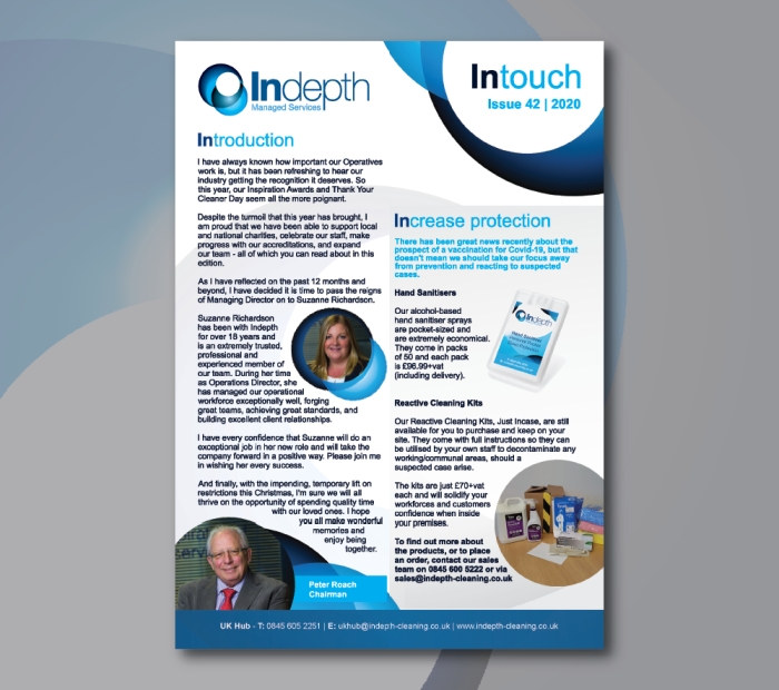 Welcome to the next Indepth Intouch Newsletter! This issue includes some great work achievements, products and services that can help to keep offices and employees safe, as well as some news from the team.