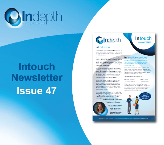 Welcome to the next Indepth Intouch Newsletter! This issue features a round-up of our involvement in the Facilities Show, introduces some new faces, shows our continued involvement with local and national charities as well as a community project, demonstrates our commitment to improve our environmental impact and celebrates our wonderful colleagues.